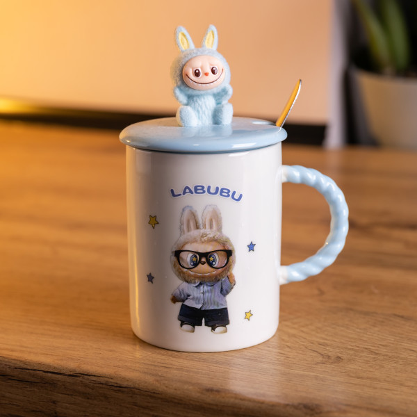 Дизайн украшен изображением персонажа Labubu — деталь, которая придает чашке узнаваемый вид и делает ее приятным подарком для коллекционеров или ценителей оригинальной посуды. На верхней части крышки расположена декоративная фигурка Labubu. Благодаря высоте 15 см и диаметру 7,5 см, чашка имеет оптимальные пропорции для горячих и холодных напитков, а вес 400 г обеспечивает стабильность на поверхности.