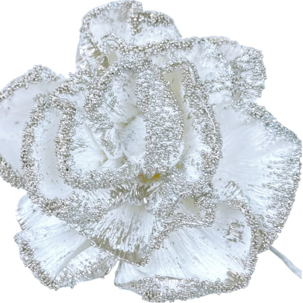 Объемный декоративный цветок пиона станет отличным дополнением рождественских венков, флористических композиций и фотозон. Золотая поталь и блестки делают цветок еще более выразительным, а гибкая ножка позволяет с легкостью закрепить его в любом необходимом месте.