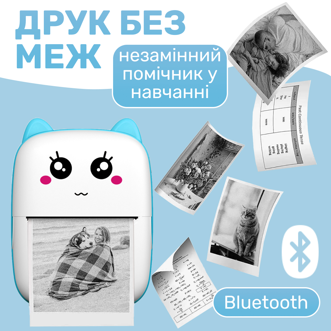 Mini Printer - это компактный принтер, который может печатать текст и графику. Он использует термопечать, поэтому не требует чернил, а только термобумагу. Благодаря Bluetooth-соединению, принтер можно использовать где угодно. Mini Printer станет отличным подарком для детей. Он поможет им в игровой форме лучше запомнить буквы, цифры, новые слова, а также развивать мелкую моторику. На принтере можно печатать раскраски, прописи, любимых персонажей, фотографии и многое другое.