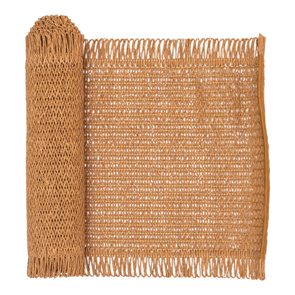 Эта декоративная дорожка для стола — стильное решение для сервировки и декора интерьера. Она привносит в пространство природные мотивы и создаёт атмосферу уюта, а фактурное плетение и аккуратная бахрома по краям делают изделие выразительным элементом сервировки.