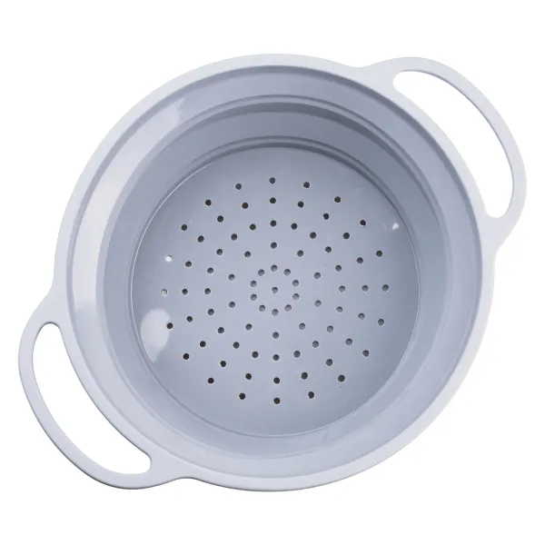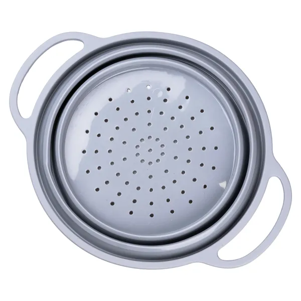 Благодаря гибкому материалу, дуршлаг плотно прилегает к посуде различной формы, что делает его удобным для использования с кастрюлями, мисками и другой кухонной утварью. Складной дизайн дуршлага делает его компактным и удобным для хранения, ведь он занимает минимум места на кухне.