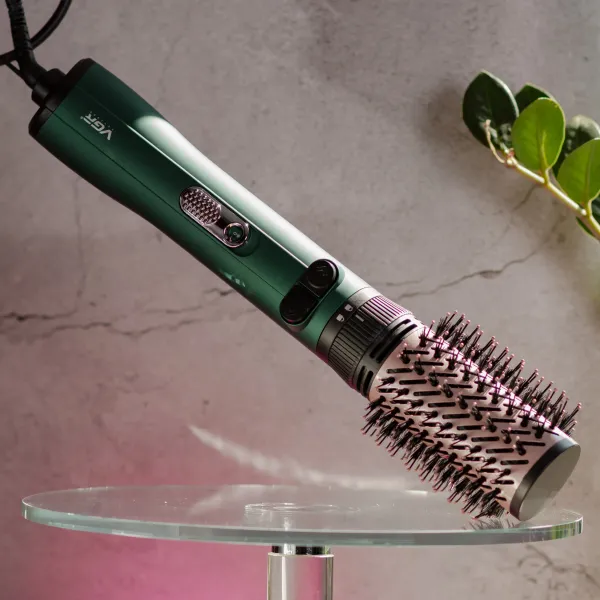 Фен щетка VGR V-498 - сочетает функции фена и щетки. С мощностью 1000-1200 Вт, этот прибор обеспечивает эффективную сушку и укладку волос. Особенностью является функция вращения щетки влево и вправо, что позволяет с легкостью создавать как объемные, так и идеально гладкие прически. Это идеальный инструмент для тех, кто стремится к быстрым и профессиональным результатам в домашних условиях.