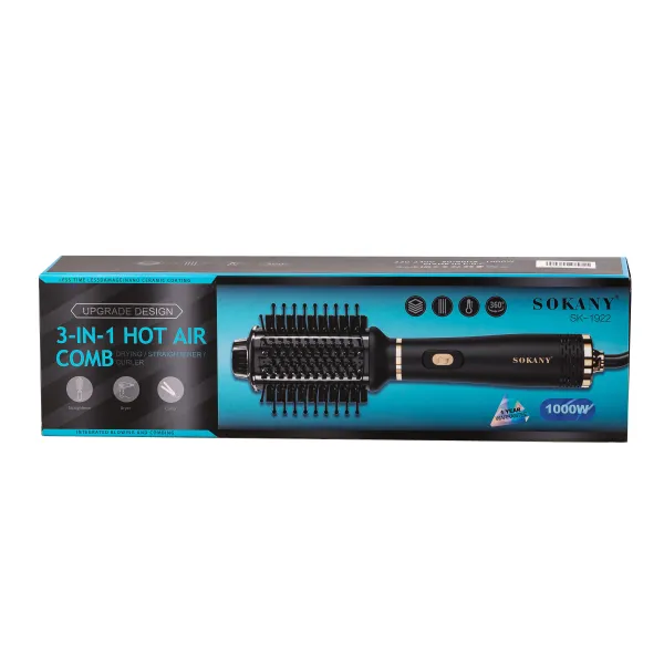 Фен-щетка для волос Sokany SK-1922 – многофункциональное решение для создания идеальной укладки. Стайлер объединяет преимущества фена, утюжка для волос и щетки, позволяющей придать дополнительный объем, или разгладить локоны, что дает возможность исключить использование нескольких инструментов для работы с прической.