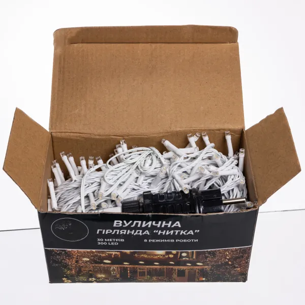 Гирлянда «Нить» с 300 LED лампочками предназначена для создания эффектного освещения на открытых и закрытых пространствах. Общая длина 30 метров позволяет украшать фасады домов, балконы, деревья, террасы или витрины, обеспечивая равномерное свечение по всей длине. Белая нить гармонично смотрится днем и незаметно сливается с фоном, делая гирлянду эстетичной частью декора.