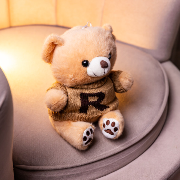 Медведь изготовлен из густого плюша с коротким ворсом и приятной текстурой. Плотная набивка позволяет медведю отлично держать форму даже при активном использовании. В верхнюю часть головы вшита прочная петля-подвес, благодаря которой игрушку удобно использовать как интерьерное украшение или оригинальный брелок.
