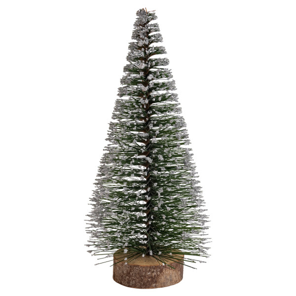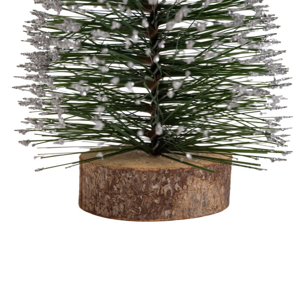 - Устойчивое основание: Ель надежно закреплена на круглом основании из натурального дерева, что придает ей устойчивость и завершенный рустикальный вид.