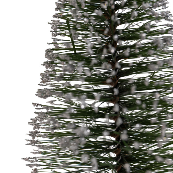 - Эффект инея: Вся елочка щедро обсыпана серебристым глиттером, создающим эффект мерцающего снега или инея, который переливается при свете.
