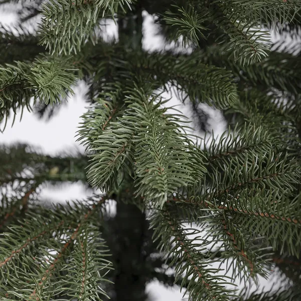 Каждая ветвь дерева производится методом формовочного литья, что даже вблизи придает елке естественный вид и сходство с живым деревом. Для изготовления использован качественный полиэтилен, устойчивость конструкции обеспечивает подставка из нержавеющей стали.