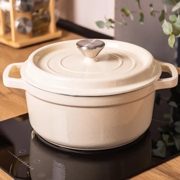 Толщина стенок и дна составляет 5 мм, что обеспечивает эффективное распределение тепла без перегрева. Вес 5.3 кг гарантирует стабильность во время приготовления. Благодаря классическому дизайну, кокотница станет не только практичным, но и стильным дополнением кухни. Она подходит для ежедневного использования и позволяет достичь ресторанного качества блюд в домашних условиях.