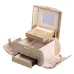 Оригинальный кейс-органайзер для украшений размером 24х17х18 см, выполненный в виде небольшого саквояжика - стильное решение не только для хранения аксессуаров, на туалетном столике, но и как вариант для транспортировки украшений на выставки и презентации. Шкатулка имеет 6 отсеков, благодаря чему можно удобно разместить кольца, браслеты, серьги, цепочки различного размера. Внутренняя отделка выполнена из велюра и отлично подходит для жемчуга, камней, драгоценных металлов и бижутерии.