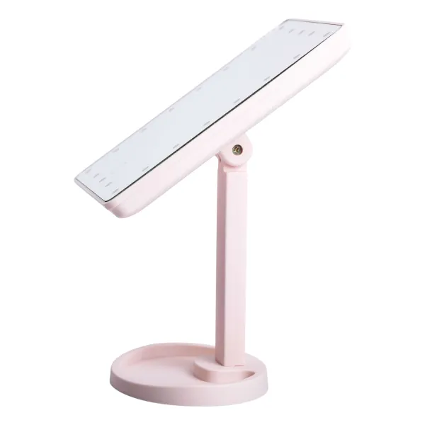 Гибкое зеркало для макияжа выполнено в прямоугольной форме и оснащено пластиковой рамой, что обеспечивает легкость конструкции и удобство в использовании. Оно предназначено для ежедневного косметического ухода, помогая выполнять макияж, ухаживать за кожей или создавать различные образы. Встроенная подсветка гарантирует равномерное освещение без бликов и теней.