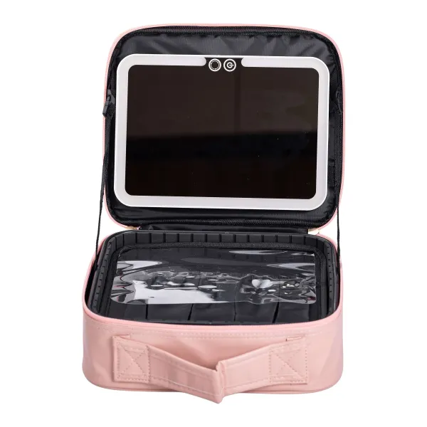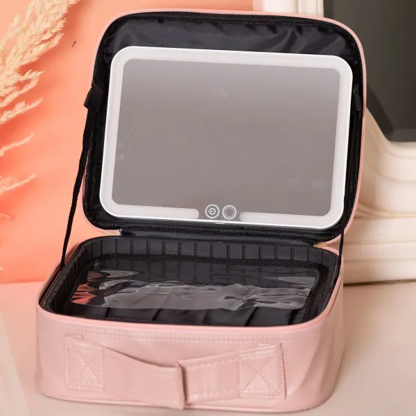 Косметичка с лед-зеркалом - практичное решение для хранения декоративной косметики, уходовых средств, а также макияжа в условиях недостаточной освещенности. Внутреннее пространство разделено на ячейки для размещения косметики и аксессуаров, дополнительно предусмотрен чехол под кисти для макияжа. Размер ячеек можно менять благодаря съемным перегородкам.