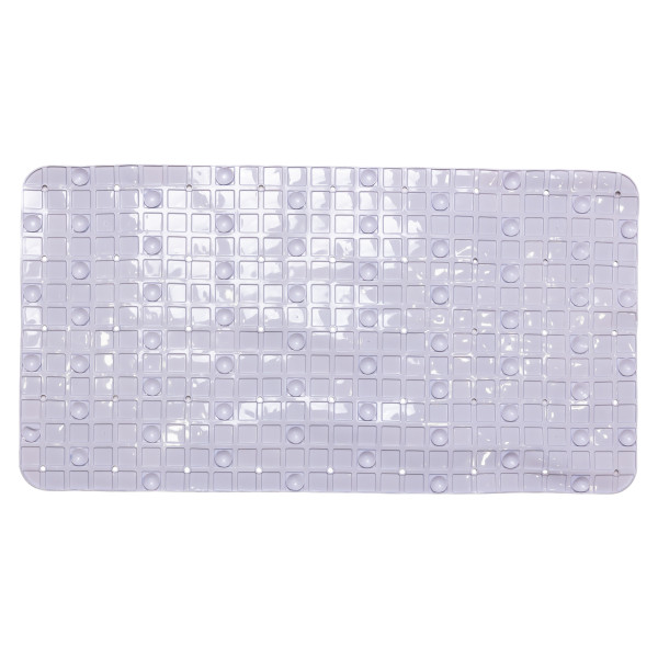 В нижней части коврика расположены присоски, которые надежно фиксируют его на поверхности ванны или пола душевой кабины. Коврик легко очищается, быстро высыхает и сохраняет форму даже при регулярном использовании, сочетая безопасность, удобство и лаконичный дизайн.