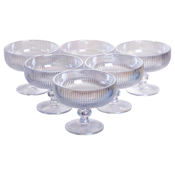Прозрачное стекло устойчиво к царапинам и механическим повреждениям, а ножка придает изделию элегантность и удобство при держании. Легкий вес каждой креманки делает их удобными для использования и перестановки во время сервировки.
