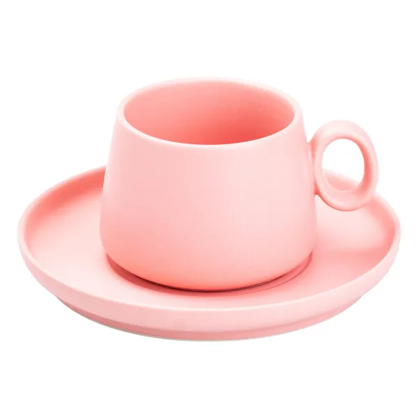 Простая форма кружки с немного изогнутыми краями удобно ложится в руку, даря приятные ощущения. Ее лаконичный дизайн лишен лишних деталей, подчеркивает красоту минимализма. Блюдце идеально дополняет композицию, повторяя изящные линии кружки.
