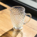 Кувшин для напитков объемом 1,2 л изготовлен из толстого стекла. Он имеет декоративную поверхность с рельефными изгибами в форме ромбов. Такой дизайн добавляет визуального объема и способствует игре света на стекле, что особенно заметно при сервировке напитков. Прозрачное стекло позволяет видеть содержимое, а толстые стенки обеспечивают прочность.