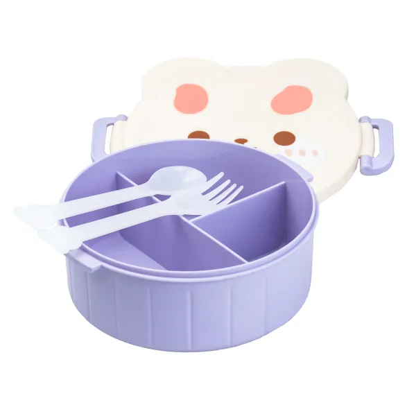 В комплект с ланч боксом входят вилка и ложка, чтобы ваш ребенок имел все необходимое для вкусного и удобного обеда. Крышка в виде милого кролика сделает ланч бокс вашего ребенка более привлекательным и интересным. Ее веселый вид заставит малыша улыбаться и с нетерпением ждать обеденного перерыва. Крышка плотно прилегает к ланч боксу, сохраняя свежесть продуктов в течение длительного времени.