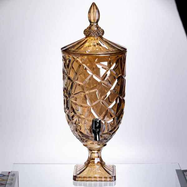 Вместительный диспенсер в теплом медовом оттенке, созданный для больших семейных застолий и уютных праздников. Объем позволяет приготовить большой запас напитка, а фактурное янтарное стекло превращает обычный лимонад в главное украшение стола.