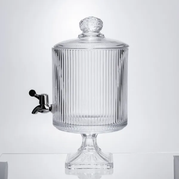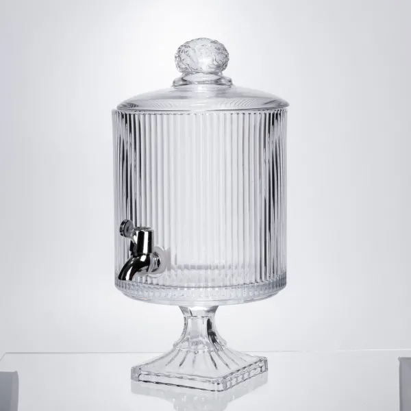 Лимонадница на ножке с краном станет удобным решением для подачи напитков в быту или во время праздничных мероприятий. Она изготовлена из толстого стекла, что обеспечивает прочность и устойчивость к нагрузкам. Благодаря прозрачной поверхности всегда виден уровень напитка и его цвет.