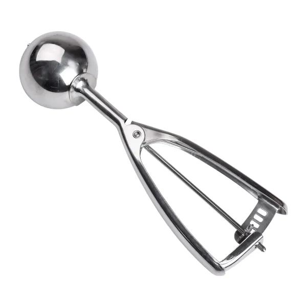 Изготовленная из нержавеющей стали, ложка оснащена пружинным механизмом, который обеспечивает быстрое и удобное выталкивание шариков. Это ускоряет процесс приготовления и подачи десертов, делая его более эффективным.