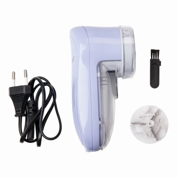 Данное устройство работает как от сети, так и от аккумулятора, что позволяет использовать его даже в дороге, не беспокоясь о доступе к электропитанию. Машинка имеет диаметр 6 см и высоту 14 см, что делает ее удобной для хранения и позволяет обрабатывать как большие поверхности тканей, так и мелкие детали. Корпус выполнен из прочного пластика, обеспечивая долговечность и надежность в использовании.