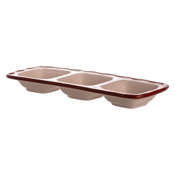 Менажница изготовлена из качественного фарфора, что обеспечивает его прочность, долговечность и безопасность при контакте с продуктами. Материал легко моется, не впитывает запахи и сохраняет первоначальный вид даже после многократного использования. Благодаря раздельным секциям она удобно подходит для подачи закусок, соусов, орехов или десертов.
