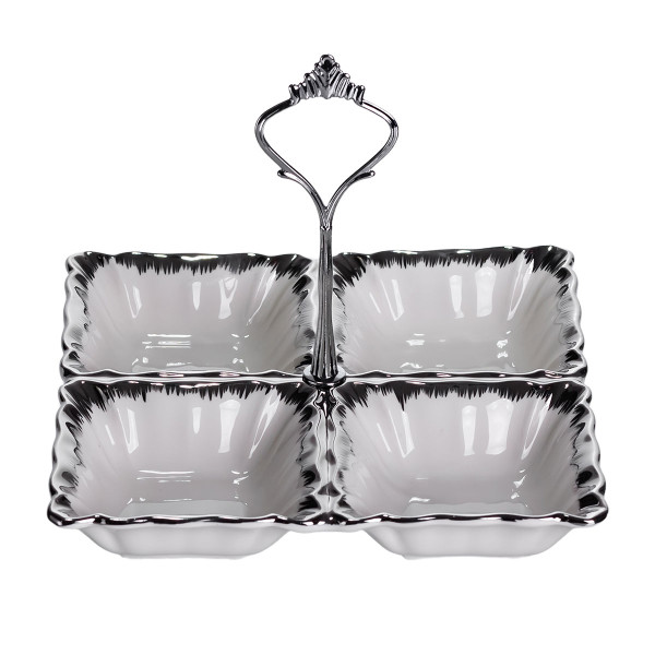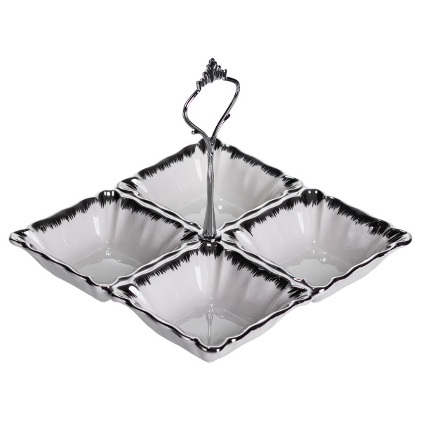 Менажница фарфоровая на 4 секции 18*18*3 см квадратная, серебро