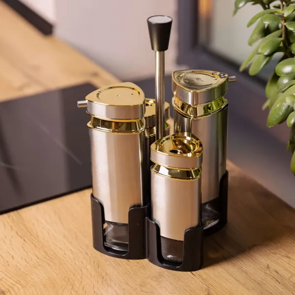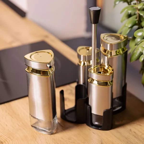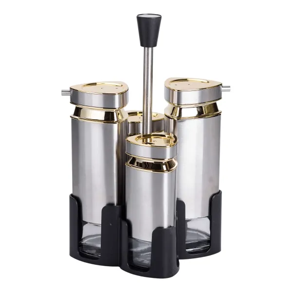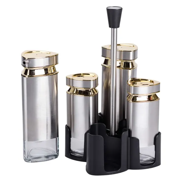 Набор баночек для специй на подставке, выполненный в стильном