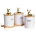 Крышки изготовлены из бамбука, дополнены декоративными фигурками в виде золотых оленей. Они плотно прилегают к банкам, защищая содержимое от влаги и посторонних запахов. Объем каждой емкости — 400 мл, что оптимально подходит для ежедневного использования. Благодаря высоте 10 см и диаметру 9 см банки легко размещаются на полках или в шкафу.