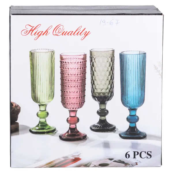 Ребристая фактура обеспечивает не только декоративный эффект, но и удобство удержания бокала. Благодаря толстым стенкам посуда устойчива к механическому воздействию, что делает ее пригодной как для повседневного использования, так и для сервировки праздничного стола. Прозрачное стекло позволяет оценить цвет и игру пузырьков в шампанском.