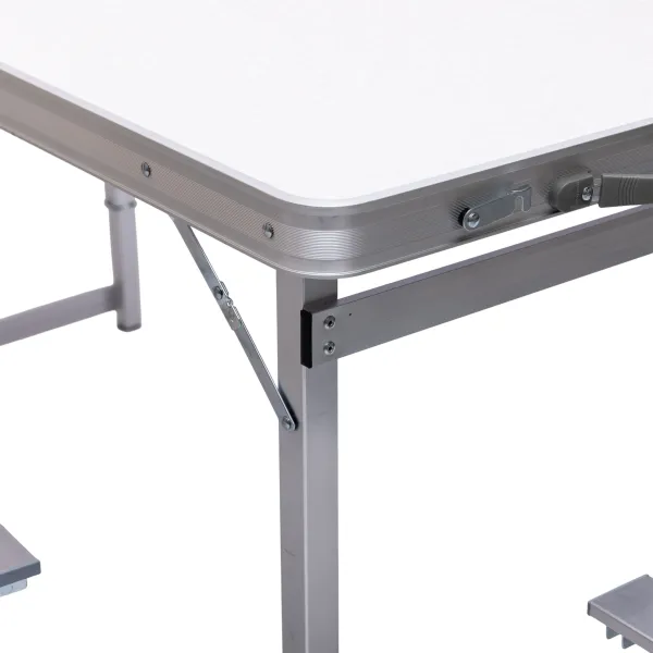 - Компактный кейс: Набор трансформируется в плоский чемодан с удобной ручкой. Все стулья укладываются внутрь столешницы, превращая комплект в единый мобильный объект для транспортировки.