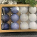 Диаметр шаров — 8 см, что подходит для оформления средних и больших елок. Набор из 12 штук позволяет равномерно украсить дерево или дополнить уже имеющиеся украшения. Этот вариант также уместен для оформления витрин, фотозон или тематических интерьеров в холодной праздничной гамме.