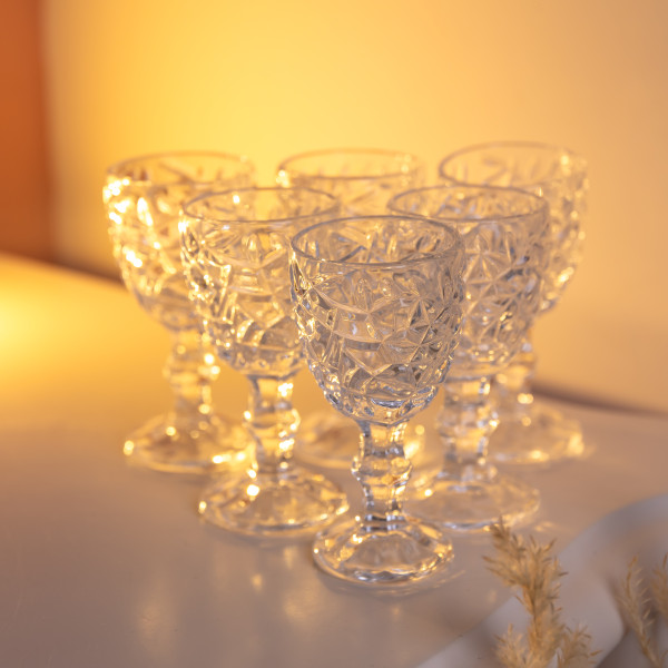 Элегантный набор из 6 рюмок с эффектной текстурой - отличный выбор для подачи крепких напитков. Изысканный рисунок на бокале, утончённая ножка и устойчивое круглое основание — идеальное сочетание стиля и практичности.