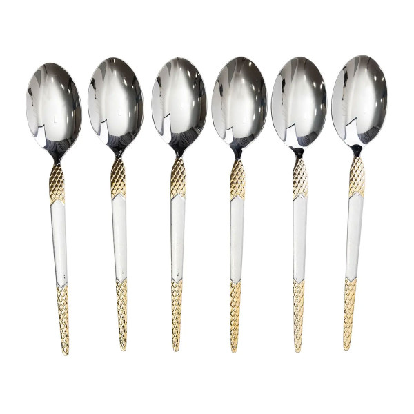 Материал изготовления — высококачественная нержавеющая сталь, устойчивая к ржавчине, царапинам и потере блеска. Ложки имеют оптимальный вес, благодаря чему удобно лежат в руке. Они не впитывают запахов и не влияют на вкус пищи, поэтому подходят для ежедневного пользования, сервировки стола или использования во время праздничных мероприятий.