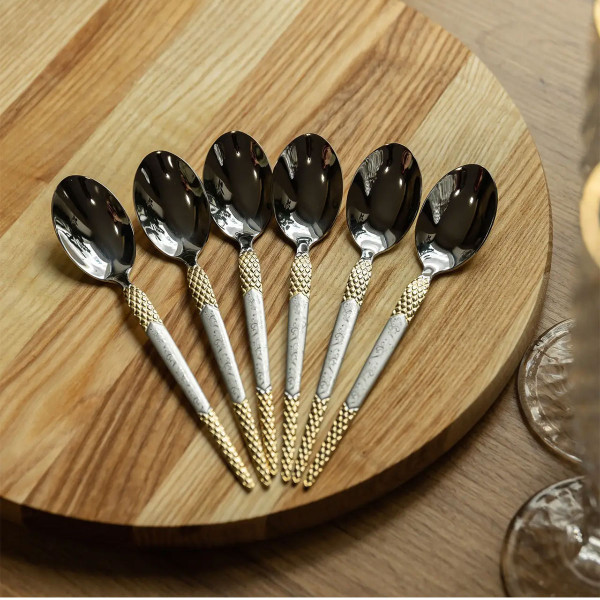 Набор состоит из шести предметов, рассчитанных на шесть персон. Благодаря универсальному дизайну он гармонично сочетается с другими столовыми приборами. Ложки можно мыть вручную или в посудомоечной машине.