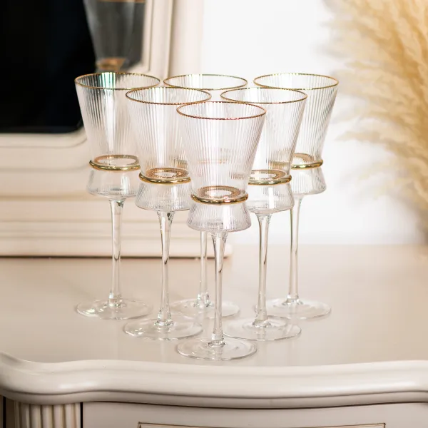 Набор бокалов для вина Stunning - это воплощение изысканности и элегантности, что делает его идеальным выбором для любого стола. Каждый бокал имеет вместимость 300 мл, что обеспечивает достаточное количество напитка для наслаждения ароматом и вкусом вина. Прозрачное стекло позволяет оценить цвет напитка, а золотой ободок добавляет роскошного вида, создавая атмосферу праздничности и элегантности.