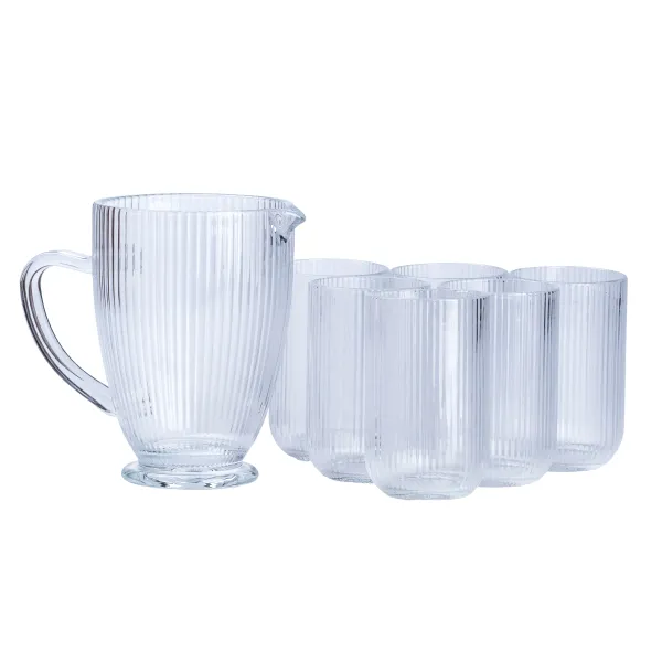 Кувшин имеет удобную ручку и объем 1070 мл, а стаканы - устойчивое дно и объем 420 мл. Это делает набор идеальным для подачи соков, воды, компота, лимонада и других напитков, как дома, так и в ресторане, кафе или баре.