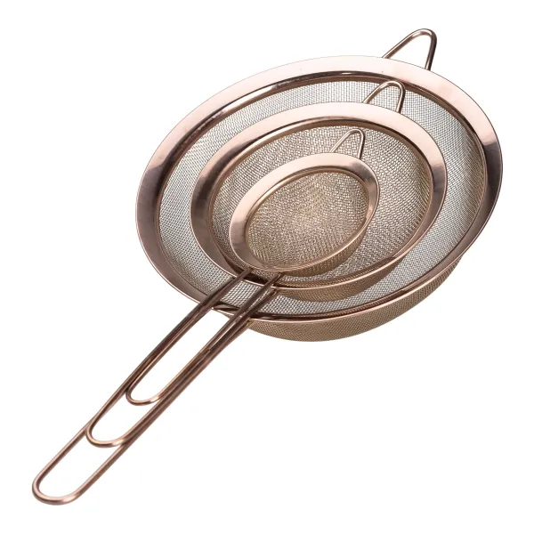 Набор ситечек из нержавеющей стали - практичное дополнение к кухонной утвари. Аксессуары разного диаметра подходят для просеивания муки и других мелкодисперсных продуктов, протирания фруктовых и овощных пюре, соусов, а также заваривания чая.