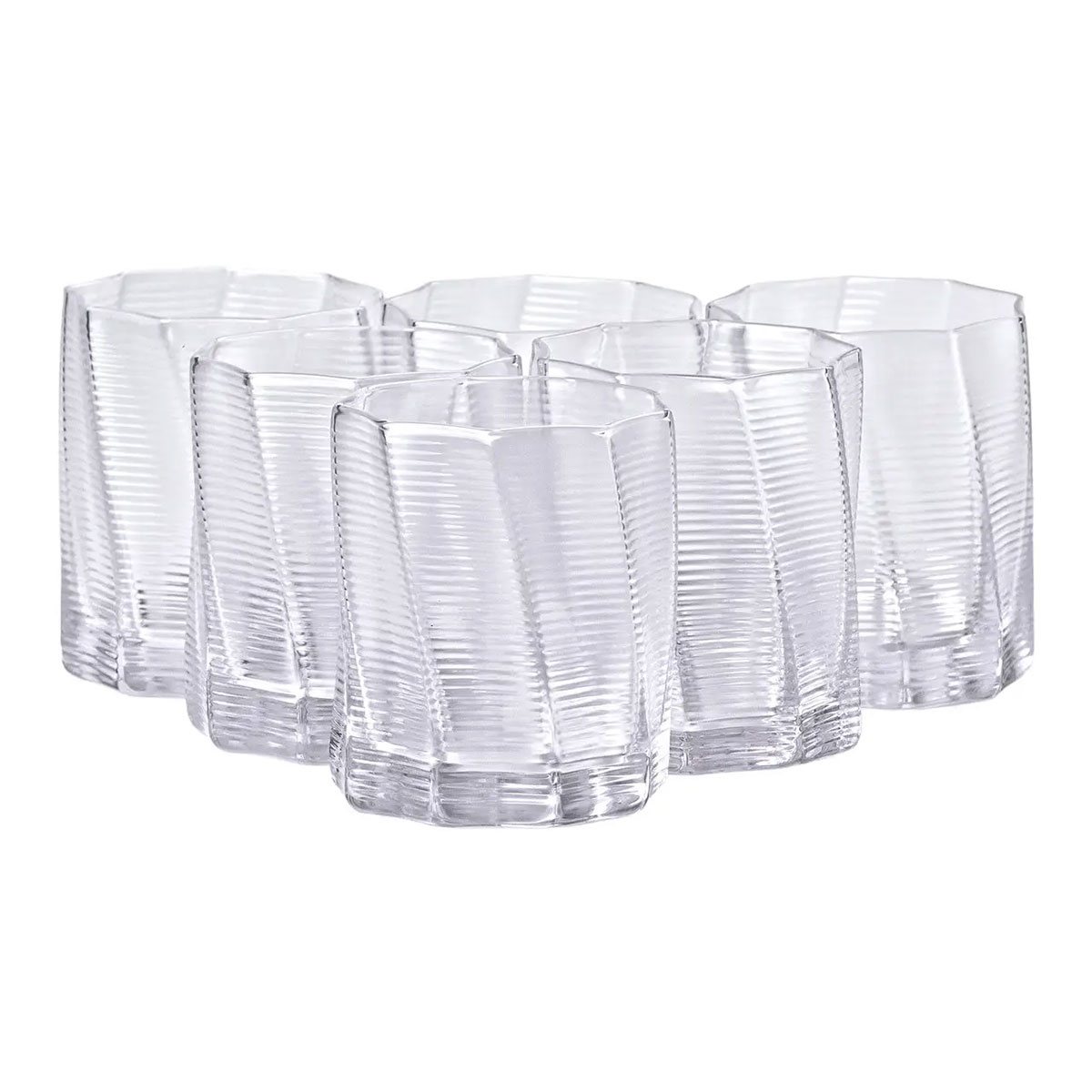 Набор стаканов 3-D print - это великолепное сочетание современного дизайна и функциональности. Каждый стакан имеет вместимость 300 мл, что делает их идеальными для подачи разнообразных напитков, от соков до коктейлей. Прозрачное стекло позволяет наслаждаться цветом и текстурой напитков, а оригинальная 3-D текстура придает каждому стакану уникальный характер. Этот набор станет стильным акцентом на любом столе, придавая ему современный вид.