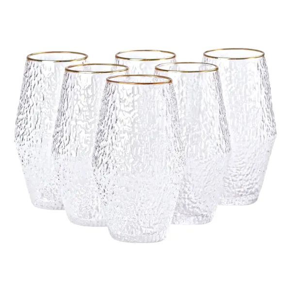 Набор стаканов Stunning состоит из шести фактурных стаканов, которые сочетают в себе стильный дизайн и практичность. Изготовленные из прозрачного стекла, эти стаканы демонстрируют элегантность и изысканность, а их фактурная поверхность создает интересную игру света, добавляя шарма любому напитку. Золотой ободок придает стаканам роскошный вид, что делает их отличным выбором для праздничных мероприятий или особых моментов.