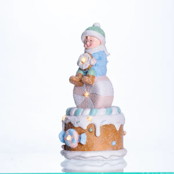 Милая декоративная фигурка Малыш на тортике изготовлена из фарфора и покрыта мерцающим глиттером, имитирующим снег и сахарную глазурь. В корпусе фигурки расположены светодиоды, создающие мягкую подсветку, которая придает ей очаровательный вид.