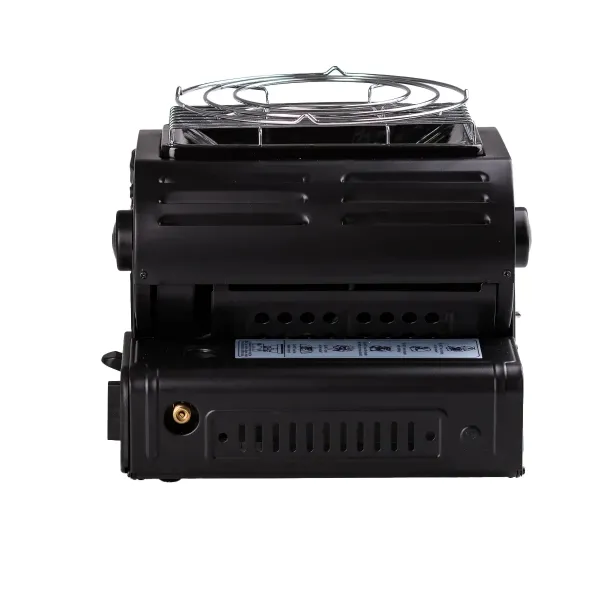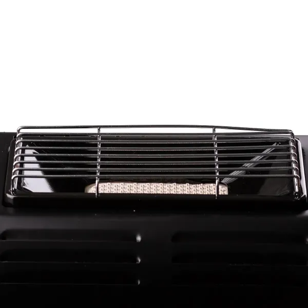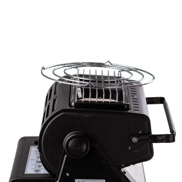 Портативный обогреватель с керамическим нагревательным элементом имеет поворотный механизм, который позволяет направлять тепловое излучение под нужным углом и использовать обогреватель как плиту для готовки, установив посуду на съемный таганок. Кроме того, это надежное, эффективное и безопасное решение для обогрева палаток, уличных шатров, автотрейлеров, павильонов или небольших помещений дачного типа. Обогреватель оснащен клапаном контроля давления газа, устройством настройки защитного картриджа и удобной ручкой для переноски.