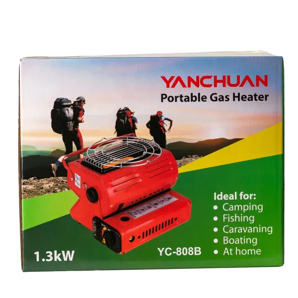 Туристический газовый обогреватель Portable Gas Heater YC-808B - именно то, что нужно для рыбалки и кемпинга, туризма и отдыха на природе. Мощность 1,3кВт делает его многофункциональным устройством, которое можно использовать для того, чтобы вскипятить воду или приготовить пищу, быстро добиться комфортной температуры в помещении.
