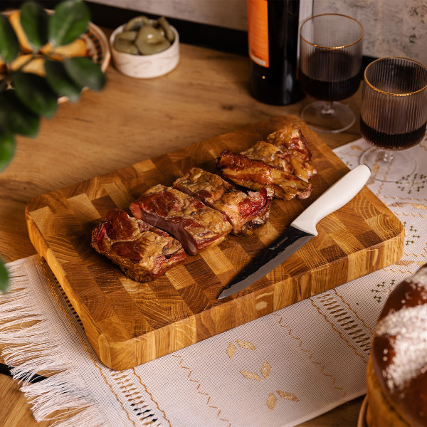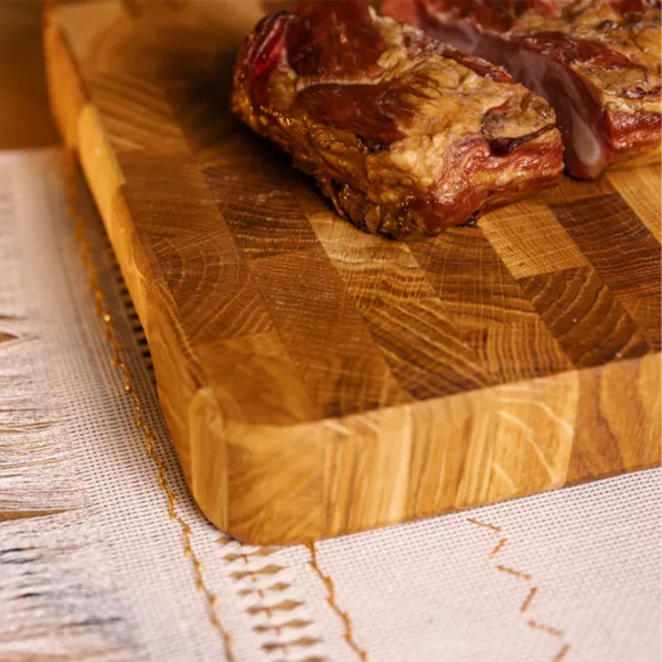 Дубовая торцевая доска «Домино» прямоугольная — эталон качества и эстетики на кухне. Изготовленная из прочного массива дуба, она имеет торцевую структуру, которая обеспечивает повышенную износостойкость и сохраняет остроту ножей. Благодаря натуральной текстуре дуба доска имеет стильный вид, сочетая функциональность и естественную красоту древесины.