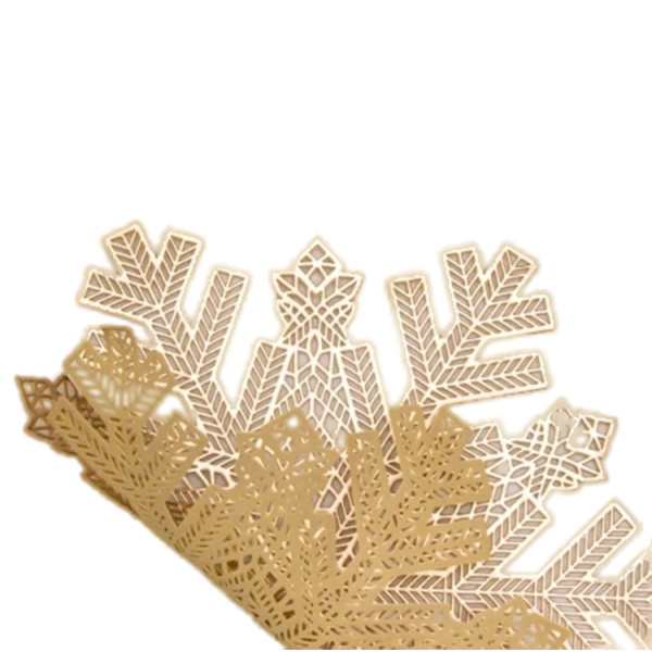 Элегантный плейсмат в форме шестилучевой снежинки с ажурным тиснением - отличный выбор для праздничной сервировки и оригинальный элемент декора. Его можно использовать не только в качестве индивидуальной подложки под тарелки, но и как элемент различных новогодних композиций, подставку под свечи или вазы.