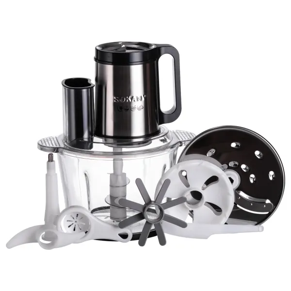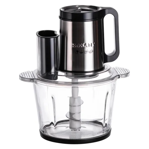 Кухонный чоппер SOKANY SK-06011 - многофункциональное устройство, отвечающее всем требованиям современной кухни. Чоппер имеет мощность 1000 Вт и чашу из толстого стекла, что позволяет обрабатывать достаточно твердые продукты. Крышка с загрузочным отверстием предотвращает разбрызгивание, но позволяет добавлять ингредиенты прямо во время работы чоппера.