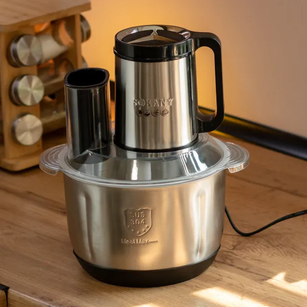 Чоппер Sokany SK-06020 рассчитан на домашнее использование, когда требуется быстрая и универсальная обработка большого количества продуктов. Его конструкция подходит для ежедневной работы с мясом, овощами, фруктами и тестом, оптимизируя подготовку к приготовлению сложных блюд.
