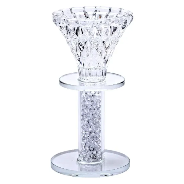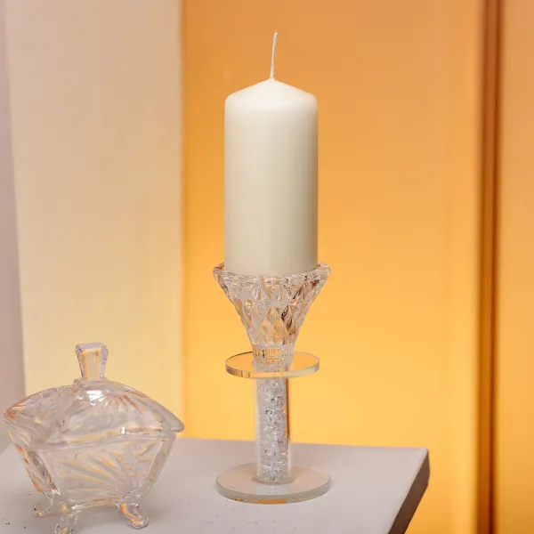 Подсвечник подходит для интерьерного декора, а также создания атмосферы в обеденной зоне, спальнях или во время мероприятий. Стеклянная фактура эффектно преломляет свет, создавая игру бликов во время горения свечи. Благодаря классической форме и прозрачному материалу его легко комбинировать с другими предметами декора.