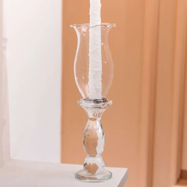 Стеклянная структура позволяет игре света проходить сквозь материал, создавая уютную атмосферу в помещении. Благодаря весу 500 г, подсвечник устойчив к случайным сдвигам, при этом не выглядит массивным. Форма цветка вверху добавляет эстетической выразительности и делает его уместным как для классического, так и для современного интерьера. Подсвечник можно использовать как отдельный декоративный акцент или в сочетании с другими элементами декора.