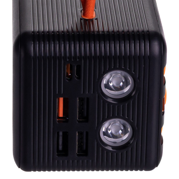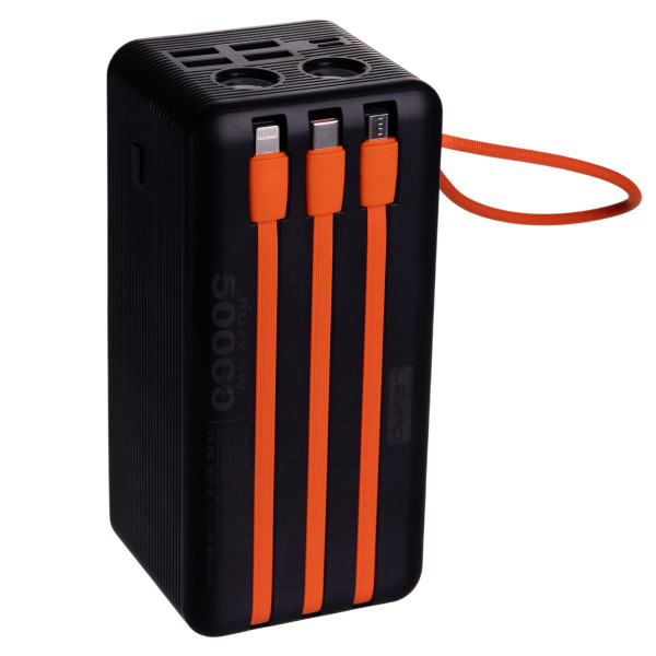 - 50 000 mAh позволяет зарядить среднестатистический смартфон до 10–12 раз, что делает вас полностью независимым от розеток.